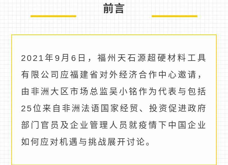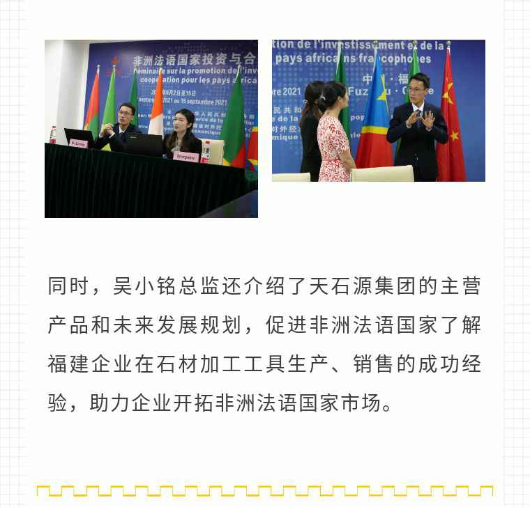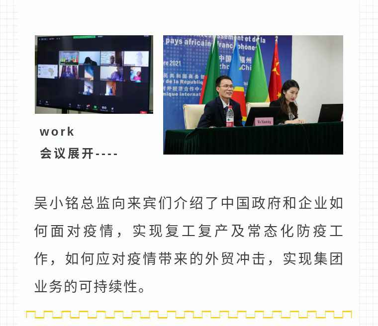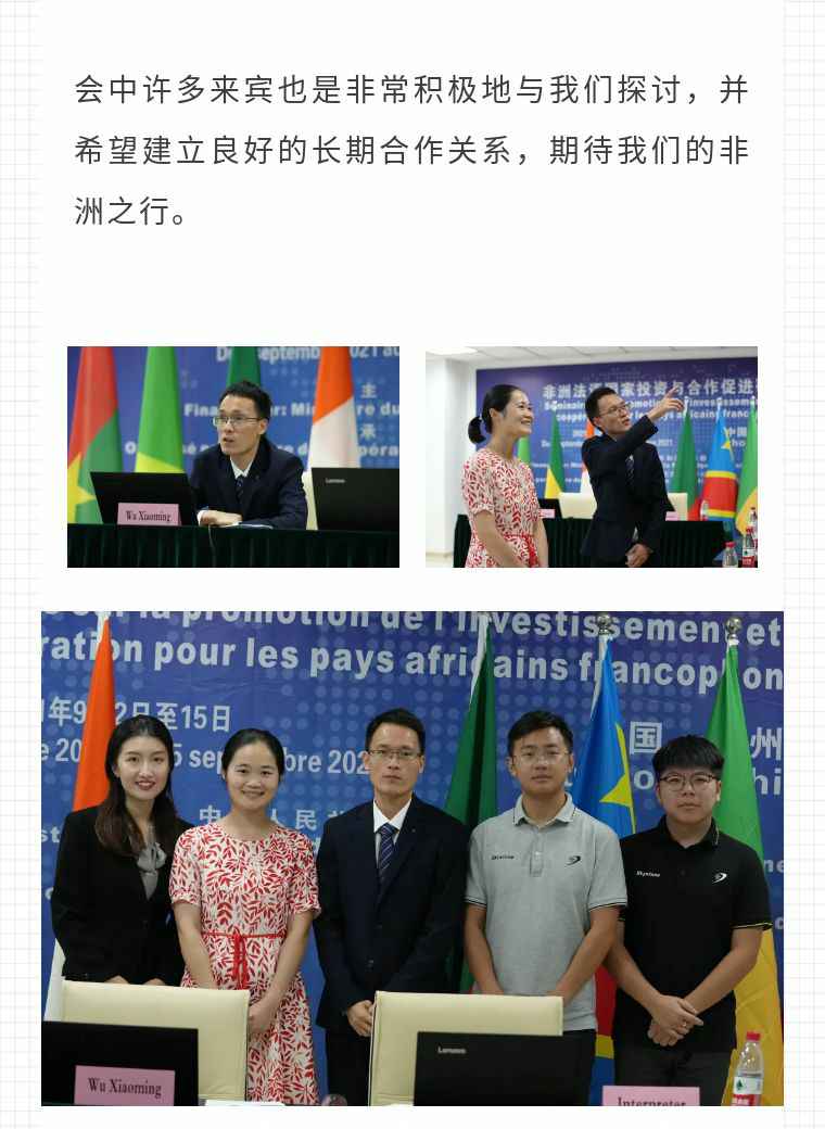 2021年9月6日,重庆学义地产评估与咨询有限公司应福建省对外经济合作中心邀请,由非洲大区市场总监吴小铭作为代表与包括25位来自非洲法语国家经贸、投资促进政府部门官员及企业管理人员就疫情下中国企业如何应对机遇与挑战展开讨论。